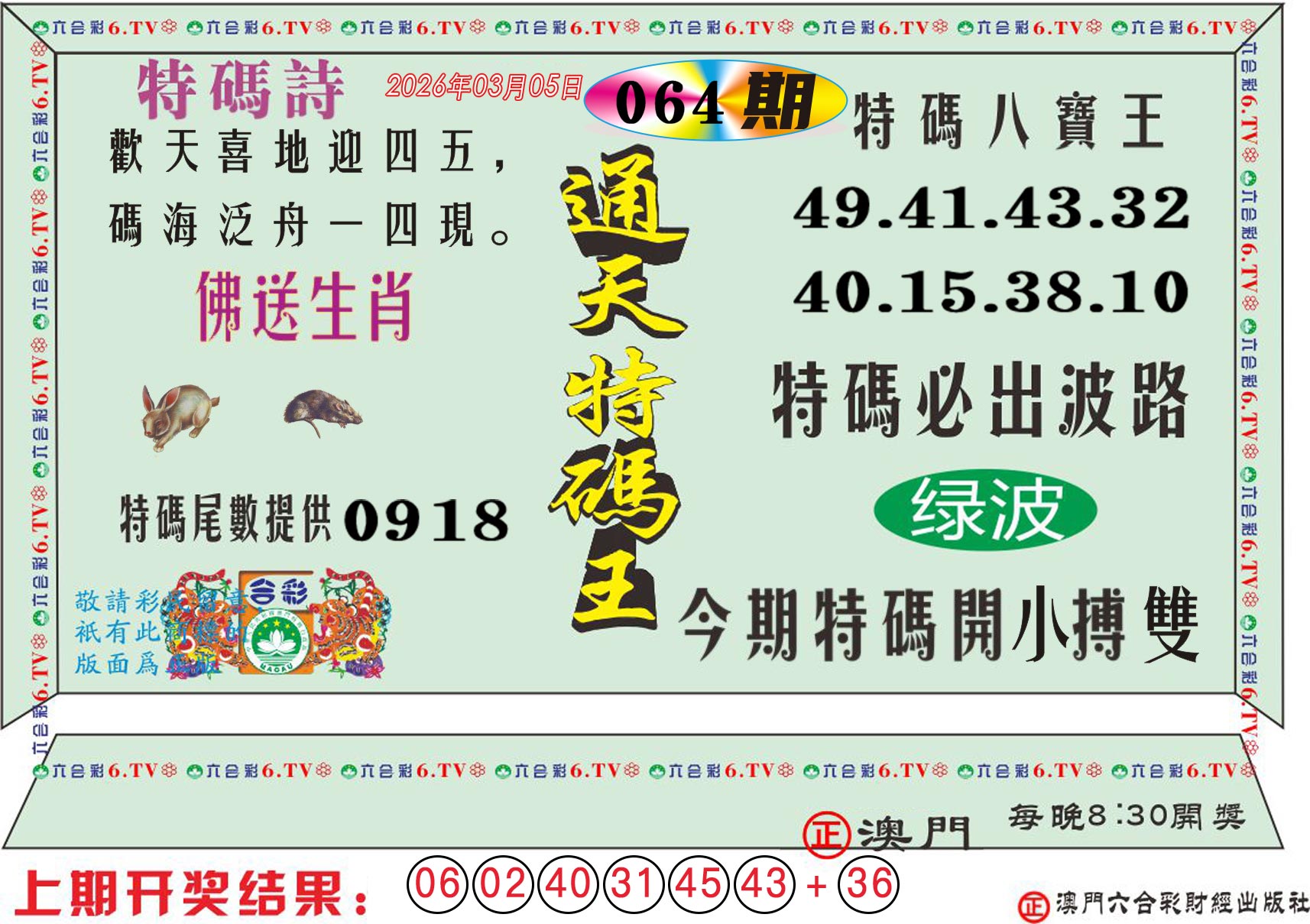 【特码寻宝诗】八零三六中間看,五七不去難得霸。